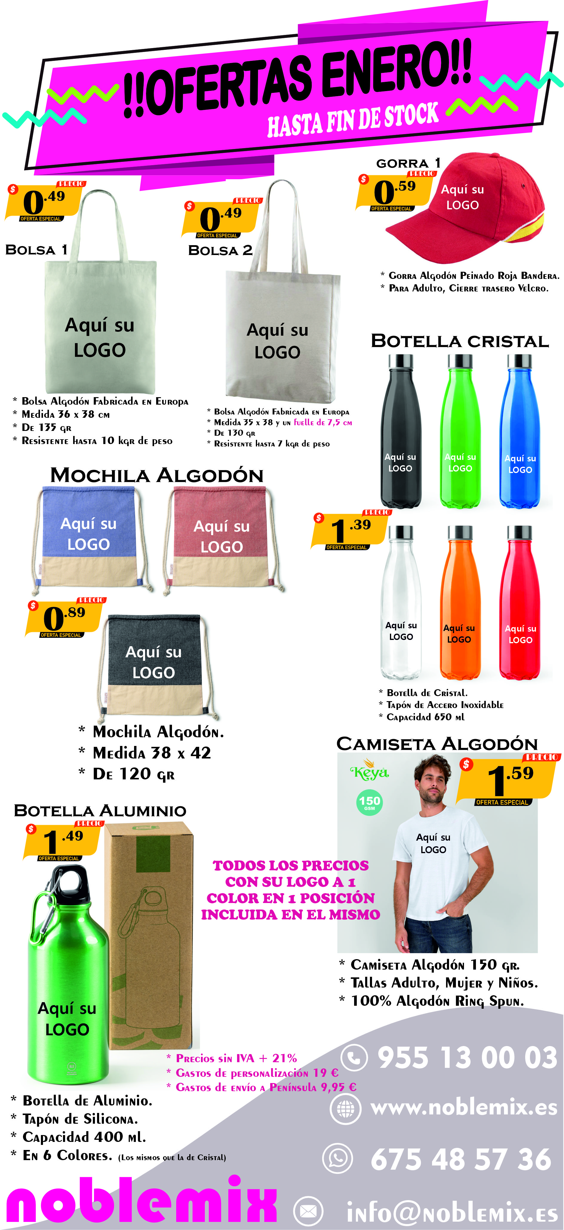 Camisetas, Bolsas y Bidones con su logotipo a precios increíbles